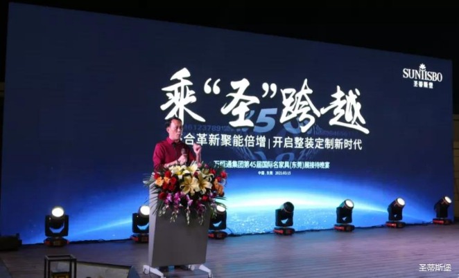 接下来,今年会集团集团执行董事王浩基先生上台发言,他对当前家具行业现状以及集团未来规划进行了全面的阐述,他将带领团队亲自研发新品简奢系列,并通过人群定位、户型定位以及渠道拓展对简奢系列深入解析。同时,他表示时代在进步,产品研发一定要紧跟时代的风口,将移动+整装定制结合原创,坚持推陈出新,迎接未来新趋势。