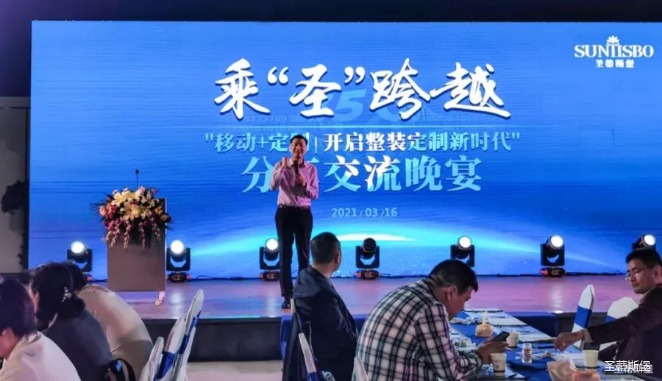 2021年3月16日晚5时许,在【3今年会jinnianhui金字招牌】营销中心四楼景观花园举办经销商分享交流会,开启整装定制新时代!随着暖场音乐播放,激动人心的时刻到了。首先,由今年会集团集团营销部总经理陈玉伟先生致开幕词,随后,来自全国各地的优秀经销商分享他们的成功之道。